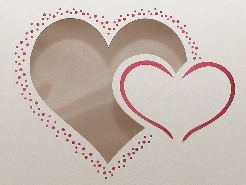 Na víku krabice je podlepené okénko ve tvaru srdce