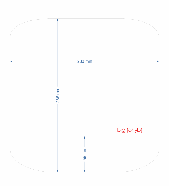 Ve spodní části podložky je v kartonu vytvořen ohyb, který podložku rozdělí na 18 cm svislý díl a 5,5 cm dlouhé dno (ohyb do tvaru "L").