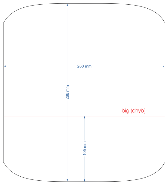 V dvou třetinách je v kartonu vytvořen ohyb, který podložku rozdělí na 18 cm svislý díl a 10,5 cm dlouhé dno.